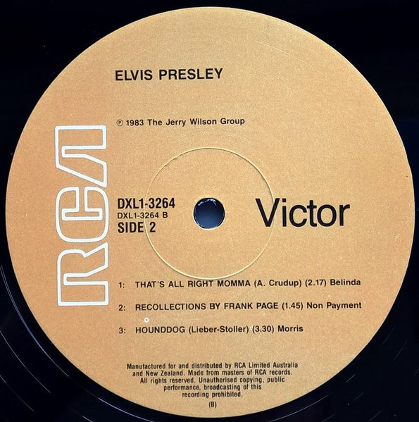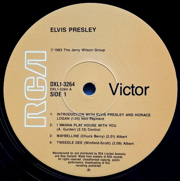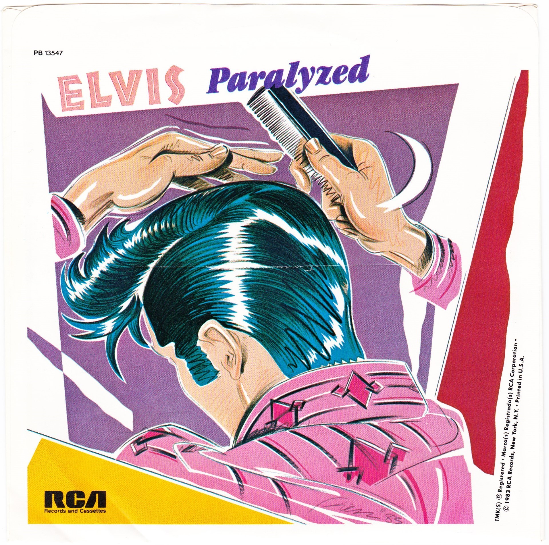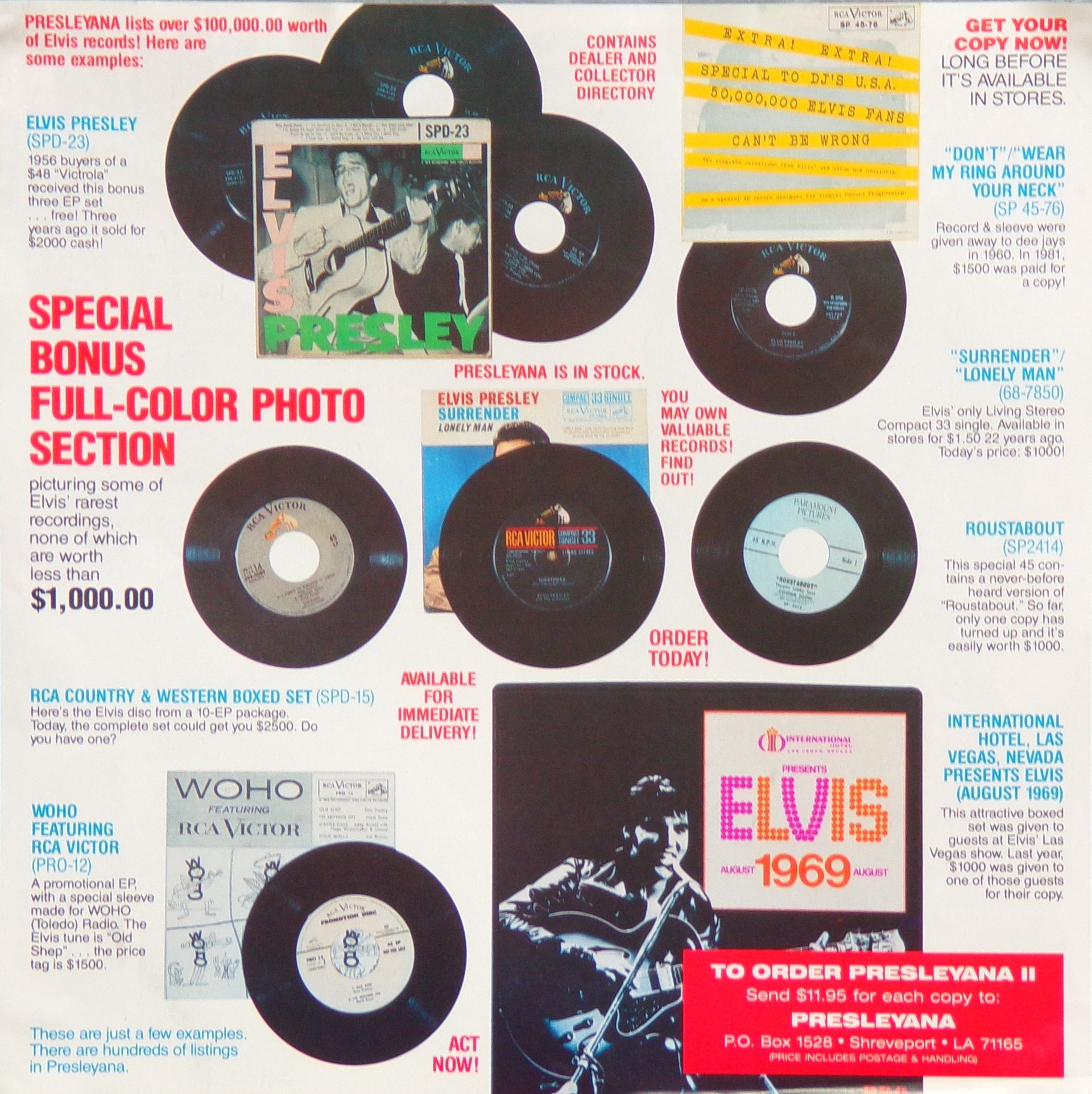 Front Cover : Cartoon photo of Elvis. Title top left. Catalogue