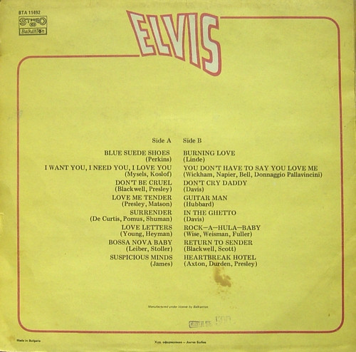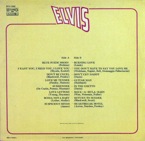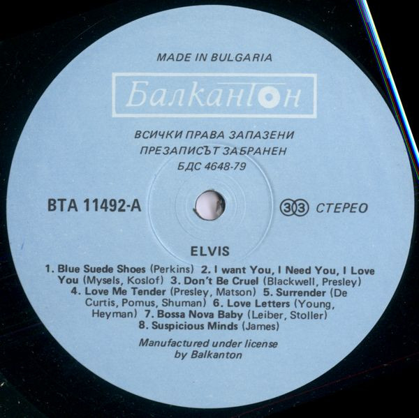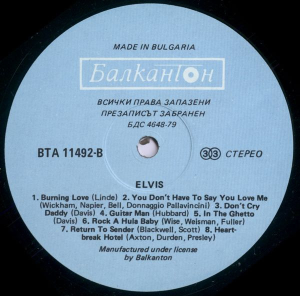 Elvis Label: Балкантон – ВТА 11492