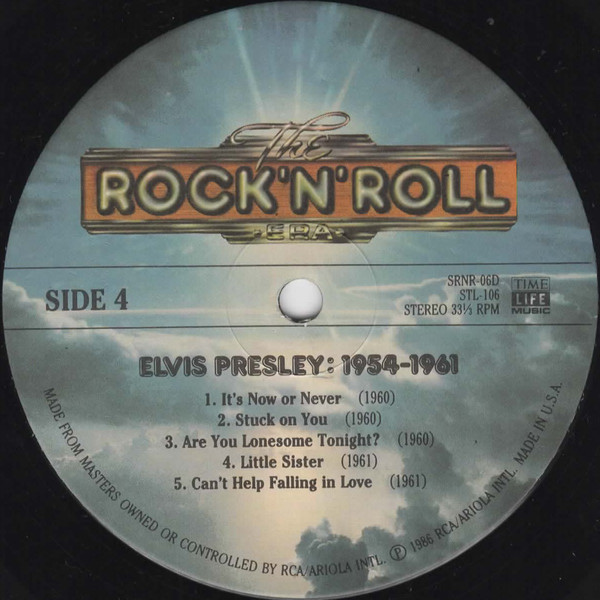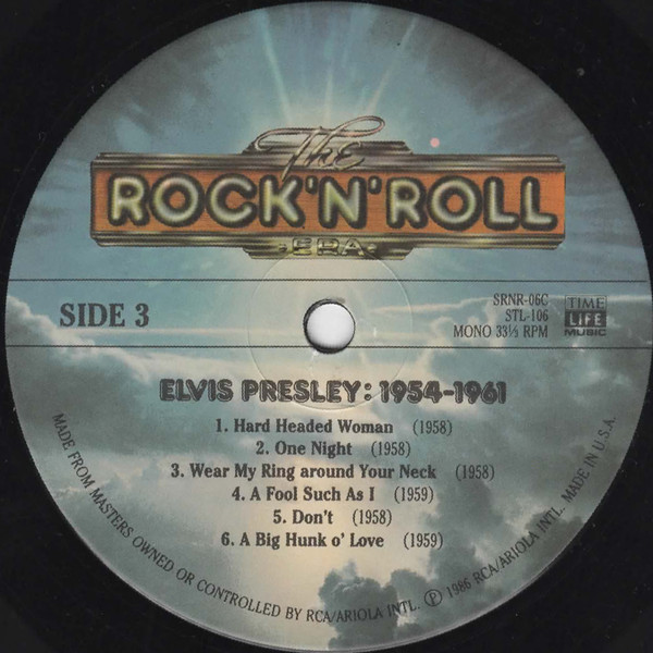 Label: Time Life Music – SRNR-06, Time Life Music – STL-106 Side One: Side Two: Side Three: Side Four: Licensed From – Sun Entertainment Corporation Art Direction – Don Sheldon Volume 6 of a 40 volume set, sold by subscription. Produced in cooperation with RCA/Ariola International. It's a 2-LP Boxed Set with Fold-Out Insert with Notes and Credits. Side 1, 2, and 3 are Mono. Side 4 is Stereo Front Cover : Photo of Elvis. Title across top. *NOTE* Released through Time Life. Made in U.S.A. bottom of each vinyl label. MONO 33 1/3 RPM Time Life Music centre of each vinyl label. Matrix / Runout (Label Side A): SRNR-06A |