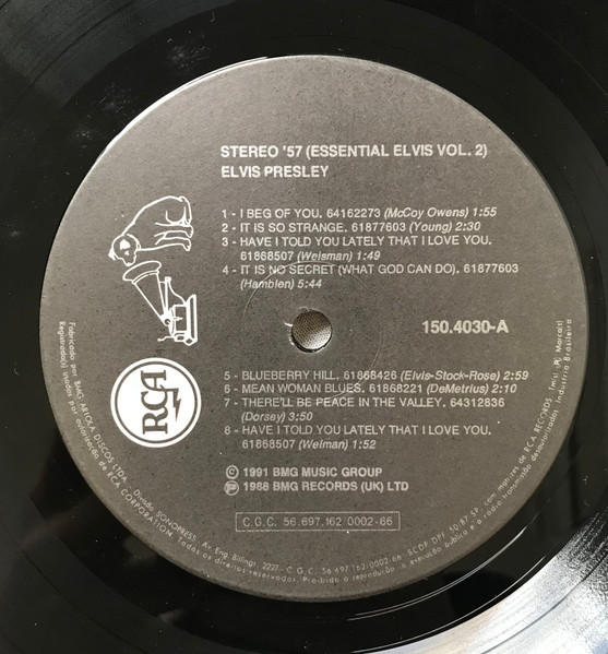 ELVIS VOLUME 2 - STEREO '57 Side One Side Two Brief History : Top Disc: Red, black and silver label. Matrix numbers Sticker: Yellow with red text. Reads Rare Unreleased. Historic Presley Recordings. Elvis Collectibles Complete With Studio Dialog & Extra Takes. 9589-1-R. Inner Sleeves |