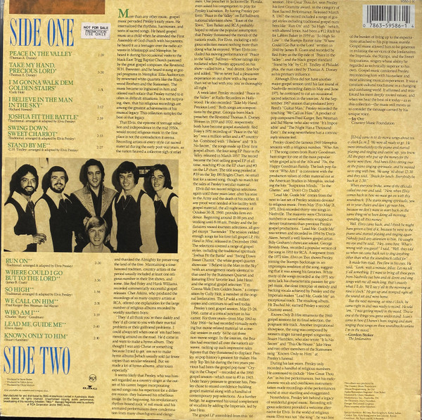 Label: RCA Victor – 9586-1-R Manufactured By – BMG Music Canada INC. – 9586-1-R Title on cover is Elvis Gospel 1957 - 1971 Known Only to Him, title on label includes a colon: Elvis Gospel 1957 - 1971: Known Only to Him. Matrix / Runout (Side A): 9586-1-R A2 |