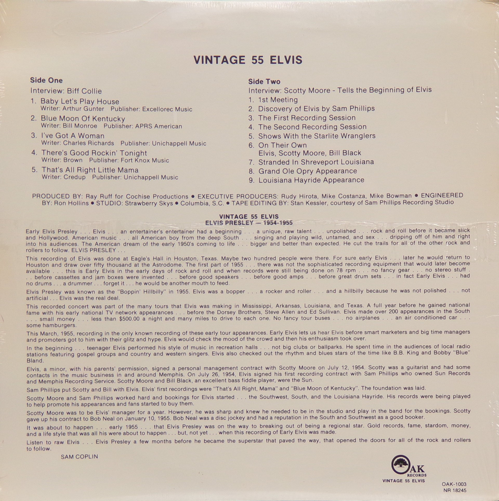 All songs recorded at RCA's Studio 'B' , Nashville.