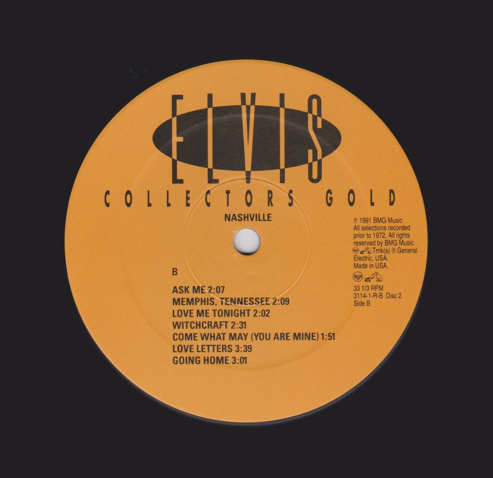GOLD (US) RCA 3114-1-R (LP) (US) RCA 3114-2-R (CD) Released: August 1991 Record One Side A Hollywood : Record One Side B Hollywood : Record Two Side A Nashville : Record Two Side B Nashville : Record Three Side A Live In Las Vegas : Record Three Side B Live In Las Vegas : Brief History : A 3 LP box set RCA BMG that is very rare. There was a limited national edition of 10,000 printed. RCA then decided not to go along with the campaign. Most were destroyed. but some got out by workers and RCA executives. It contains 'Hollywood', 'Nashville' and 'Live In Las Vegas' albums, housed in 12" x 12" picture box complete with an 8-page booklet. I have number 0005146. |