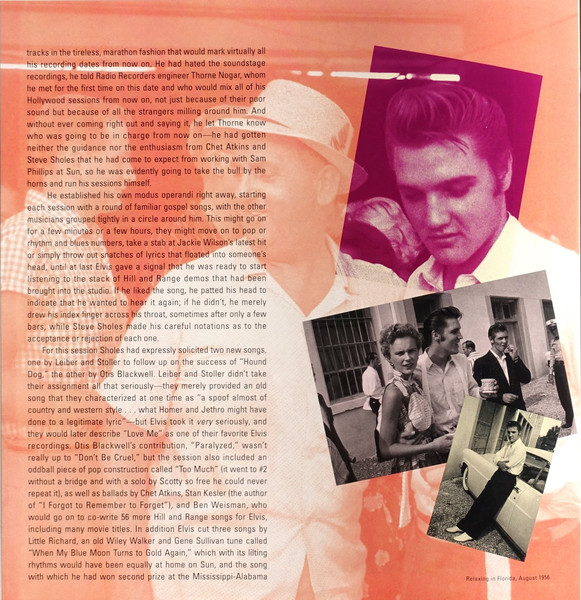 Disc 5 That's When Your Heartaches Begin * Fool, Fool, Fool (Demo) ** Tweedlee Dee (Live) *** Maybellene (Live) **** Shake Rattle And Roll (Demo) ** Blue Moon Of Kentucky (Take 1 Slow) Blue Moon (Take 2) I'm Left, You're Right, She's Gone (Take 5 Slow Version) Reconsider Baby (from Million Dollar Sessions) Lawdy Miss Clawdy (Take 3) Shake Rattle And Roll (Take 8) I Want You, I Need You, I Love You (Take 16) Heartbreak Hotel (Live) ***** Long Tall Sally (Live) ***** Blue Suede Shoes (Live) ***** Money Honey (Live) ***** We're Gonna Move (Take 4) Old Shep (Take 5) I Beg Of You (Take 1?) Loving You (Slow Version) Loving You (Up-Tempo Version) Young And Beautiful (Solo Jail Movie Version) I Want To Be Free (Movie Version Splice of Takes 10, 12 & 13) King Creole (Take 3) As Long As I Have You (Take 8 Long Movie Version) Ain't That Loving You Baby (Take 11 Fast Version) * Recorded: Memphis Recording Service, Sun Studios, Memphis : Acetate July 18, 1953 ** Recorded: Radio Recordings, Lubbock, Texas, January 6, 1955 *** Recorded: Louisiana Hayride, Gladewater, Texas, April 30, 1955 **** Recorded: Louisiana Hayride, Shreveport, Louisiana, August 20, 1955 ***** Recorded: New Frontier Hotel, Las Vegas, May 6, 1956 |