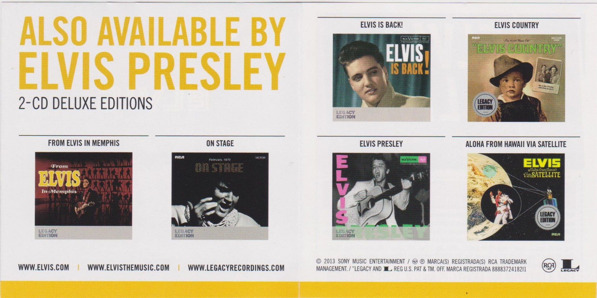 4 : Details : 2013 Release *NOTE* 2 LP set. Hype sticker states "40th Anniversary Of Elvis' Classic Recordings At Legendary Stax Studios". Insert Promoting 40th Anniversary 3-Disc Set & inside advert for 6 CD albums. Reverse is a coupon for money of tickets into Graceland. Records pressed by United Record Pressing often contain an etched "ⓤ" or "Ⓤ" (U in a circle) in the run-out groove area. |