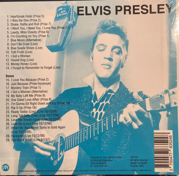 VPI – 783.524 Compiled By – Jean-Marie Pouzenc Cat numbers Tracks 23 to 28 recorded live 12/15/56. Compiled for Elvis My Happiness ℗ & © 2022 VPI Barcode (scanned): 3700477835248 |
