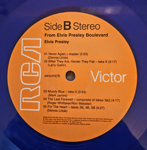 Front Cover : Photo of Elvis. Title across top. Catalogue