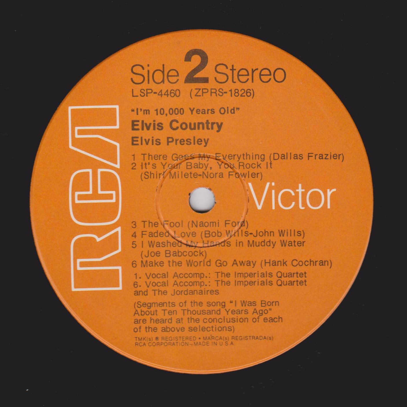 Elvis Country (I'm 10,000 Years Old) is the thirteenth studio album by American singer and musician Elvis Presley, released on RCA Records (LSP 4460) in January 1971. Recorded at RCA Studio B in Nashville, it reached number 12 on the Billboard 200. It peaked at number six in the United Kingdom, selling over one million copies worldwide. It was certified Gold on December 1, 1977, by the Recording Industry Association of America.