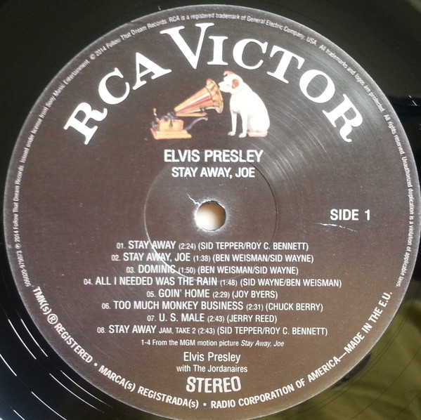 STAY AWAY, JOE Side A: Stay Away - Stay Away, Joe - Dominic - All I Needed Was The Rain - Goin’ Home - Too Much Monkey Business - U. S. Male - Stay Away (Jam, Take 2) Side B: Too Much Monkey Business (Take 1, 3, 9) - All I Needed Was The Rain (Take 3 & VO/M) - Stay Away, Joe (Take 10, 12, 13) - U. S. Male (Take 2, 3, 5, 7) Side C: Goin’ Home (Take 12, 18, 21) - Stay Away (Take 5, 6) - Dominic (Take 1, 3, 2) - U. S. Male (Take 9, 10) - Stay Away, Joe (Take 15, 16, 17) Side D: Too Much Monkey Business (Take 12, 10) - Stay Away (Take 11, 12, 14) - U. S. Male (Take 11) - Goin’ Home (Take 22, 24, 26, 29) Released: May 11, 2014 Cat.-No.: 506020-975073 Format: 12'' / 33 ? rpm (2 Record Set) |