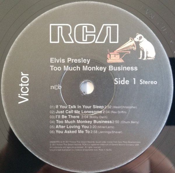 MUCH MUNKEY BUSINESS Side A: If You Talk In Your Sleep/ Just Call Me Lonesome/ I'll Be There/ Too Much Monkey Business/ After Loving You/ You Asked Me To Side B: Faded Love/ Clean Up Your Own Backyard/ Lovin' Arms/ Guitar Man/ Kentucky Rain/ In The Ghetto Side C: Burning Love/ I'll Hold You In My Heart/ Only The Strong Survive/ She Thinks I Still Care/ Long Black Limousine Side D: I'm Movin On/ Hey Jude/ Blue Suede Shoes Bonus Songs: Paralyzed/ The Elvis Medley/ Jailhouse Rock - (Let Me Be Your) Teddy Bear/ Hound Dog - Don't Be Cruel/ Burning Love - Suspicious Minds/ Wear My Ring Around Your Neck Released: June 2017 Cat.-No.: FTD 316 (506020-975112) Format: 12'' / 33 ? rpm (2 Record Set) |