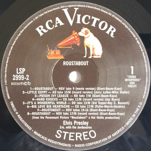 Title: ROUSTABOUT Side A: Roustabout (Take 9 - Movie Version)/ Little Egypt (Take 15/M - Record Version) / Poison Ivy League (Take 7/M)/ Hard Knocks (Take 11/M - Record Version)/ It’s A Wonderful World (Take 13/M)/ Big Love Big Heartache (Take 17/M)/ Roustabout (Take 14 - 16)/ Roustabout (Take 17/M - Record Version) Side B: One Track Heart (Take 5/M)/ It’s Carnival Time (Take 2/Take 9/M - Record Version)/ Carny Town (Take 9/M)/ There’s A Brand New Day On The Horizon (Take 5/M)/ Wheels On My Heels (Take 7/M)/ Roustabout (Take 1 - 5, 6)/ It’s A Wonderful World (Take 17 - Instrumental) Side C: I'm A Roustabout/ Hard Knocks (Take 4 - Movie Version)/ Roustabout (Take 7, 8)/ Little Egypt (Take 21 - Part Used Movie Version)/ It’s Carnival Time (Take 2/Take 12 - Movie Version)/ Roustabout (Take 10 - 12)/ Roustabout (Take 13) Side D - The Mono Soundtrack Album: Roustabout/ Little Egypt/ Poison Ivy League/ Hard Knocks/ It’s A Wonderful World/ Big Love Big Heartache/ One Track Heart/ It’s Carnival Time/ Carny Town/ There’s A Brand New Day On The Horizon/ Wheels On My Heels Released: October 2017 Cat.-No.: LSP-2999-2 (506020-975114) Format: 12'' / 33 ? rpm (2 Record Set) |