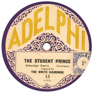 | Made for an unknown client, these discs were pressed by The Universal Music Co. at Hayes, Middlesex (often loosely known as ‘Vocalion’) from masters deriving from Aco, U.S. Vocalion, and perhaps other related sources. The only trouble is, they are so scarce as make their evaluation very difficult. The few known have numbers in single or low double figures; so probably only a first release was made, and nothing further happened? However, the G-series control numbers they bear can give us a clue to their date. Adelphi 13 bears G-1780, which is a very high number, and that series was abandoned in May 1926. This gives us a ball-park date for the appearance of this first (and only?) batch of Adelphis. (Adelphi 11 has G-1648 and G-1649, which fit well.) In addition, the ¾d copyright stamp indicates a retail price of half-a-crown, 2/6d, or 12.5p in current terms. ‘Mighty HMV’s’ popular series records were currently only 3/- (15p). Moreover, the above Adelphis are both acoustic recordings, while HMV’s had been made electrically for some time. | ||||