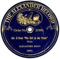 Company of Birmingham, Chester, Coventry & Manchester. The catalogue series are the same as the Beka discs from whence the masters are all derived. They started at 1 or 100; the highest known being 478, the Beka issue of which was issued in late 1911. Alexander were not advertised in the trade journals of the time, leading to suspicion that it may have been a "tallyman" label, sold directly to customers, like John Bull records. |