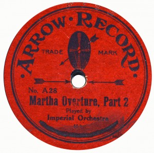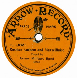 | An early British label pressed by the Carl Lindström group using Beka masters (often of an earlier vintage), Arrow existed from 1913 up to about 1916. It was a cheap line costing 1/1 or 1/- from The Scala Record company, introduced as a result of the Cinch and Phoenix records costing 1/1 produced by the Gramophone Company & Columbia, which themselves were a response to Lindström's Scala and Coliseum 1/6 records! The catalogue series was numbered A1 upwards to about A224. The label was either Red or Yellow. The Red labelled ones are earlier and were all manufactured in Germany. The yellow ones were made both in Germany and at Hertford, England, where Lindström had a record manufactory built in London in 1913.; some yellow labelled Arrows do not state a place of manufacture. | ||||