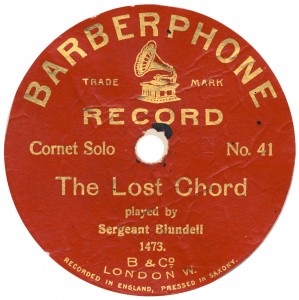 | Some time between 1912 and 1915, Gramophone retailer Walter Barber & Co., 115 Uxbridge Road, Shepherd’s Bush, London W, had records made for them. Two, or possibly three sorts are known. (1) Pressed by Kalliope in Saxony, (e.g. those above), from masters of Blum & Co., who had the Diploma, Pioneer and Victory &c. labels. (2) The Disc Record Co. in Harrow, Middx. might have pressed some Barberphones after the outbreak of the Great War (August 1914); these may or may not have master numbers in the same 1000 series. (3) Barber is also known to have bought up surplus stocks of records and over-stuck his own labels on them. The colour or shape of these labels is not known to us, However, Grammavox and Popular are known to exist over-stuck as Barberphones. All are very scarce. | ||||