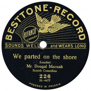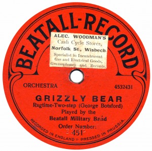 | Manufactured in or near Tonbridge, Kent, by Crystalate for Payne’s ‘Bon Marché’ Drapers store, Bourke Street, Melbourne. The discs are scarce, even in Australia. Jack Gould is a pseudonym for Geoffrey Gelder’s Kettner’s Five. Though recorded in December 1926, it is still a mechanical recording; Crystalate did not adopt the electrical system until 1927 – probably the last company to do so. ‘The Rosary’, actually by the celebrated Scottish bass Tom Kinniburgh, was recorded 16th March 1927, and first appeared on Imperial 1746. | ||||