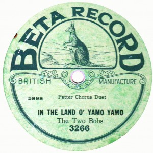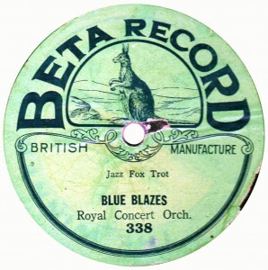 | Beta Records: These labels are over-stuck on Edison Bell Winner records, destined, rather obviously, for the Australian market. They carry the correct artiste credit. Winner 3266 was issued in January 1919, and the Beta used the same number. The others use the last three digits of the Winner catalogue number. ‘Blue Blazes’ was on Winner 3338 of September 1919, and The Versatile Three was on Winner 3360 in January 1920. It is rather likely that these were surplus ‘old stock’ Winners sold off to an entrepreneur who had the labels made. If so, Beta records may date from circa 1922. | ||||