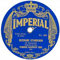 | The C.L.P.G.S. recently published No.33 in their Reference Series. This contains 36 pages of the history of the various Imperial labels, from 1907 to early 1937. It also contains a CD-ROM, which has a searchable list of the several thousand discs that appeared on these. Go to www.clpgs.org.uk/reference-series.htm to get your copy! Also see Frank Andrews: FTR 2, 2002, pp73-5, and TMR 69, 70 (1984-5). Frank’s comprehensive write-up was revised & is included in the above Reference Series booklet. These first Imperials were made by the U.S. firm Leeds & Catlin of New York, and imported to the U.K. beginning about April 1906. They were single sided. 600 issues were available by January 1907. The small (~1.5") ‘back-sticker’ is present only on some (early?) examples. This is probably because the sticker stipulates that the discs may only be used on a machine with a feed-screw – like a cylinder phonograph. This was part of a dodge to avoid infringing a U.S. patent. Surprising as it may seems to us, the fact that the sound-box playing a disc was carried across the disc by the very groove which it was tracking, was a crucial patent in the U.S. at the time. But as far as I know, it was totally irrelevant in the U.K., so eventually, no back-stickers? Imperial had some recordings, of exalted status, made for them in Europe, by Favorite. By way of contrast, in 1907 the famous Scottish baritone Ian Colquhoun went to the U.S. and recorded over 30 sides, presumably mainly for the British market. However, in 1909, after long-ongoing patent litigation, Leeds & Catlin were compelled to stop manufacturing discs. The residual stock was sold off cheaply; in this country, largely by Gamages. Single sided Imperials are quite scarce. Some of the Favorite sides were issued in the U.K. at higher prices. They had a different, black label featuring just the crown, and are excessively rare. In 1911 the trade mark was acquired by the Sound Recording Company. | ||||