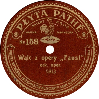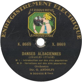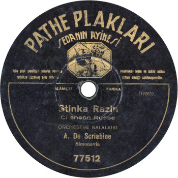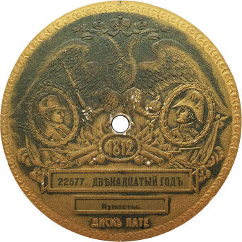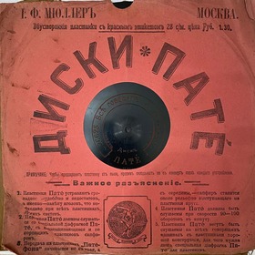 Pathe was founded by brothers Charles & Emile Pathe, who were owners of a successful bistro in Paris. About 1890 they saw an Edison phonograph demonstrated at a fair and, captivated by the device, arranged to lease one as an attraction at their bistro. The early phonograph soon brought so many curious people to the Pathe establishment that lines formed to listen to it. Some even asked about purchasing phonographs for themselves. The brothers decided that, rather than give more business to Edison, they would make their own phonographs. In 1894 they started selling their own phonographs - initially based on Edison Company design - together with blank phonograph cylinders for people to make records with. Some time later they also started marketing pre-recorded cylinder records, and by 1896 had offices and recording studios not only in Paris, but also in London, Milan, and Moscow. In 1905 they entered the growing field of disc records, at first with single-sided discs with a recording in wax on top of a cement base. In October of 1906 they started producing discs in the more usual material of shellac. Even with this less eccentric material, Pathe discs were unlike any others. The grooves were cut vertically into the discs, rather than the more common lateral method. The grooves were wider than that used by any other company, requiring a special ball-shaped .005 inch radius stylus to track them. The discs rotated at 90 rpm (and even 120 rpm), rather than 78 or 80. The recordings started on the inside near the center of the disc, spiraling out to the edge rather than vice-versa. Possibly all of this unusual technology was a preventive measure to ensure that no other record company could sue Pathe for violating their patents. Even the record sizes were unusual; other disc records came in 7 inch, 10 inch, and 12 inch sizes, while Pathe came in 21 cm, 25 cm, 27 cm, 29 cm, 35 cm, and 50 cm (roughly 8.5 inch, 10 inch, 11.75 inch, 12 inch, 14 inch, and 20 inch) sizes. Unsurprisingly, these Pathe system records could only be played on Pathe phonographs, which would usually not play other types of recordings. In 1903 Pathe opened the first small warehouse in Moscow, while in 1907 there already was a record manufacturing shop on the Bakhmietievka with 12 working presses. By 1911 the company had branches in St.-Petersburg, Rostov-on-Don, Warsaw and Odessa. |