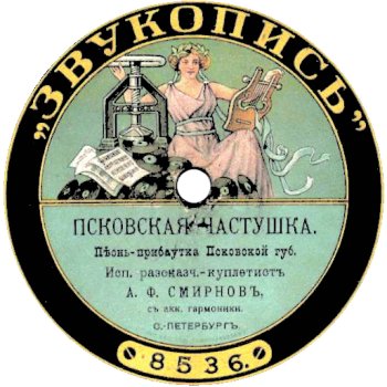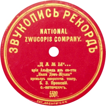 | The small Petersburg factory "Zwukopis", was engaged in recording and manufacturing of phonograph records, and acted on Russian Grammophone market from 1911 to 1913. The company was owned by businessmen I.Mazel and S.Zhitlovsky; the main office located on 13 Voznesenski pr., St.-Petersburg. Originally they plan to name it "Svetopis", the corresponding announce appeared in the "Grammofonnij Mir" (The Gramophone World) magazine in 1911, however it is unknown if any records were ever issued under this label. The first "Zwukopis" records appeared on the market in 1911. They had very unusual and attractive square shape labels. Thanks to their high quality, as well as successful selection of the repertoire, the label instantaneously won popularity. All recordings were made by skilled recordist F.Krechmer. However the competition with more powerful gramophone companies was so tough, that "Zwukopis" began gradually giving in. Popular actors preferred to record in more solid companies where they often were asked to sign exclusive contracts. As a result, the repertoire of Zwukopis grew scarce, serious disagreements raised in the company's administration. One by one left the company S.Zhitlovsky, then F.Krechmer, without whom the quality of new recordings had sharply worsened. In a short time "Zwukopis" label joined the Association of United Manufacturers and its independent existence had came to the end. |