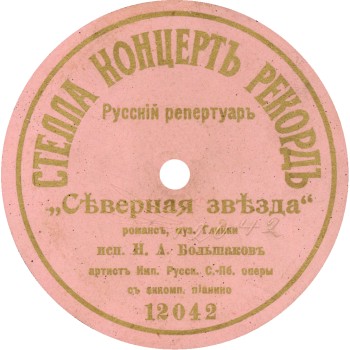 | Stella Record label was used by German company Schallplatten-Vertrieb GmbH. The headquarters and the plant located in Berlin. It had one more factory in Warsaw that was dedicated for pressing phonograph records solely with Russian repertoire. The company began to make Russian recordings at least from November 1909, which follows from an advertisement on this record, where P. D. Orlov directly names the date of recording November 9, 1909 and the name of the label - "Stella". Also, the factory pressed Russian records from Homokord and Anker-Record matrices. After the outbreak of WWI the company halted all its operations in Russia. | |||