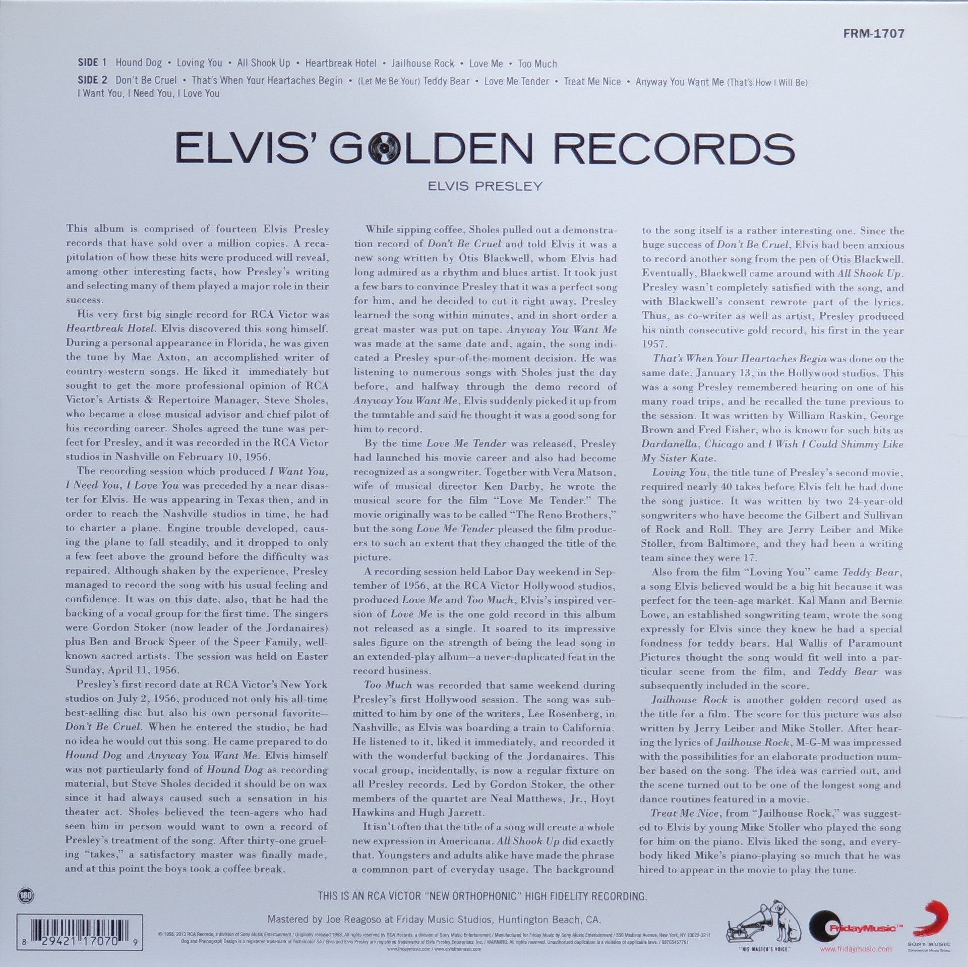 Elvis' Golden Records is one of Presley's most popular albums and has remained continuously available since its original issue in 1958. RCA first reissued the original 14 track album on compact disc in 1984. This release, in reprocessed (simulated) stereo sound, was quickly withdrawn and the album was reissued in original monophonic. RCA reissued the album on CD again in 1997 and added six bonus tracks, with "Blue Suede Shoes" an unusual track in that it was issued simultaneously in conjunction with every track from Elvis' debut LP Elvis Presley in singles form, more than five months after the release of the album on March 23. Two more charting B-sides, "I Was the One" and "My Baby Left Me", and three Sun Records tracks rounded out the compact disc. RCA Victor had purchased the rights to reissue Sun material when buying Elvis' contract from Sam Phillips in 1955, using Sun recordings to fill out album tracks throughout the decade.