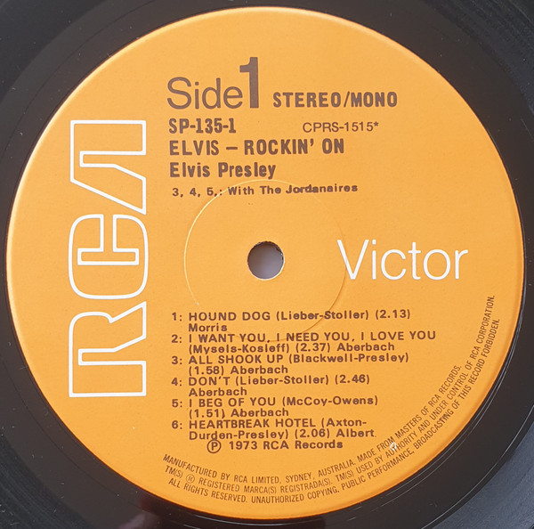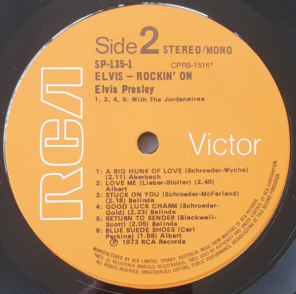 Elvis Rock 'N' On (24 Legendary Hits) RCA SP-135 Australia 1973