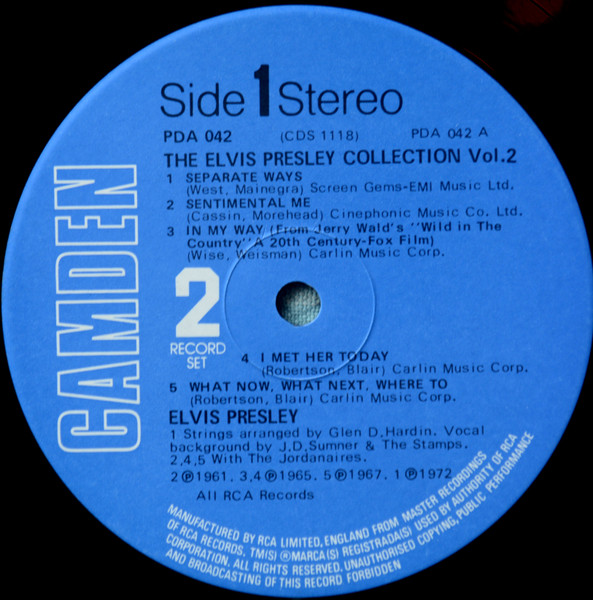 The Elvis Presley Collection Vol.2. Camden PDA042. 2 x Vinyl. Canada 1976