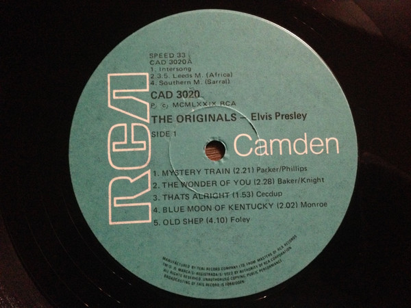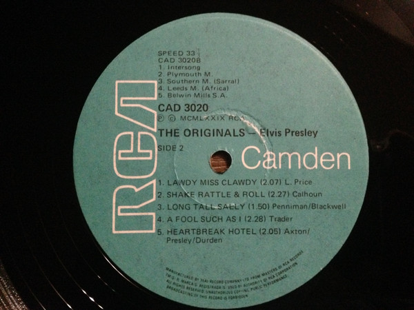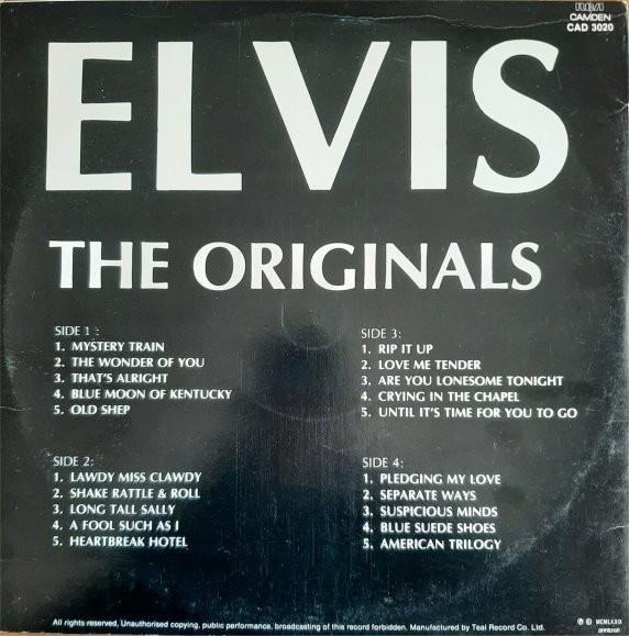 Elvis Presley The Originals (RCA Camden CAD 3020) Vinyl, South Africa (1979)