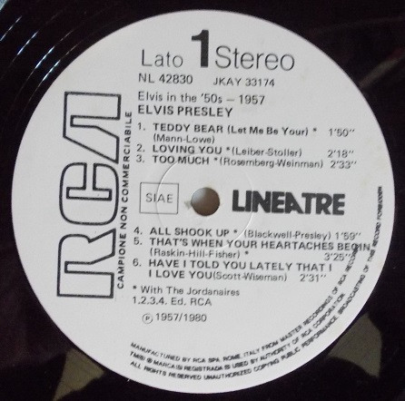 Elvis In The 50s - 1957. RCA NL 42830 Linea Tre. Vinyl. Italy 1980