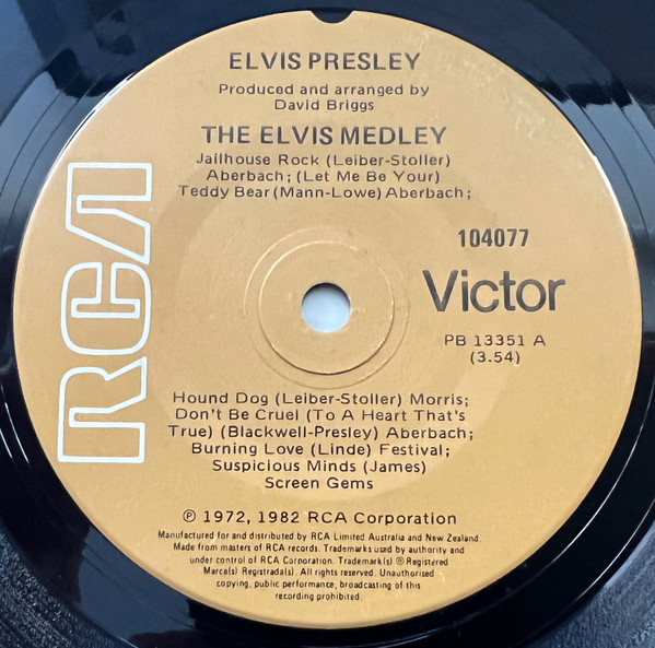 Elvis Medley (LP) (US) RCA AHL1 4530