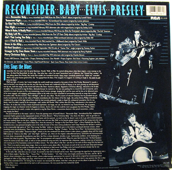 Reconsider Baby (US) RCA AFL1 5418 (LP) 1985