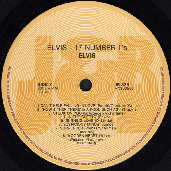Elvis 17 Number One Hits J & B Records JB 328 Australia 1988
