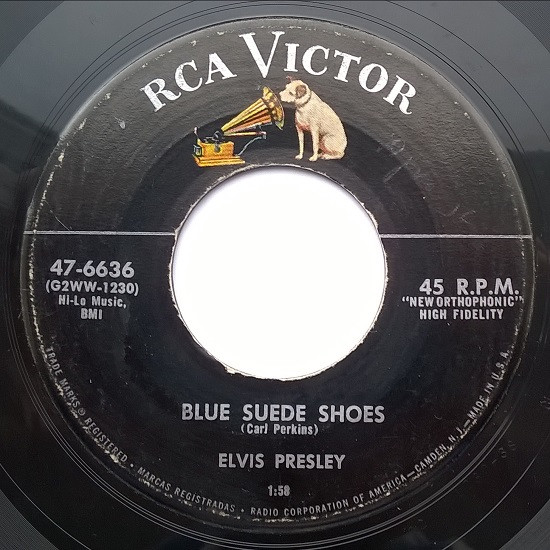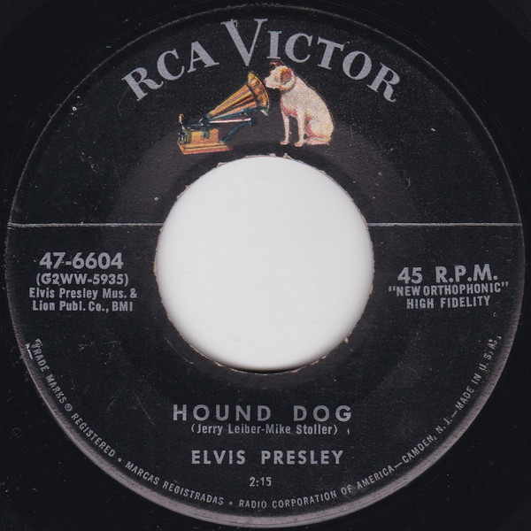 | Label: RCA Victor – 47-6643 Format: Vinyl, 7", 45 RPM, Horizontal Line Published By – Elvis Presley Music / Ross Jungnickel, Inc. Dog on top with horizontal line. |