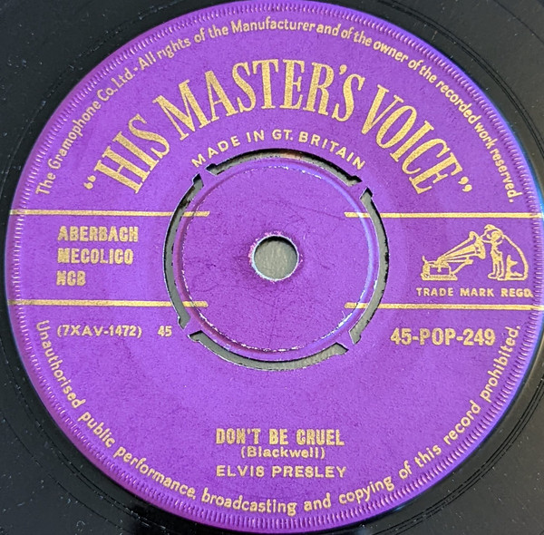 Hound Dog Label: His Master's Voice 45-POP 249 Purple label with gold print Rights Society: NCB |