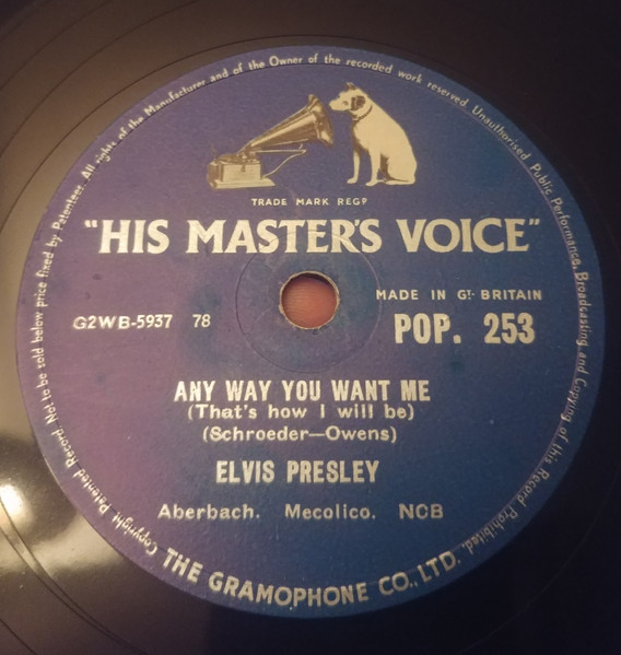 | Label: His Master's Voice – POP. 253 - UK 1956 Format: Shellac, 10", 78 RPM Published By – Aberbach Rights Society: NCB Mecolico |