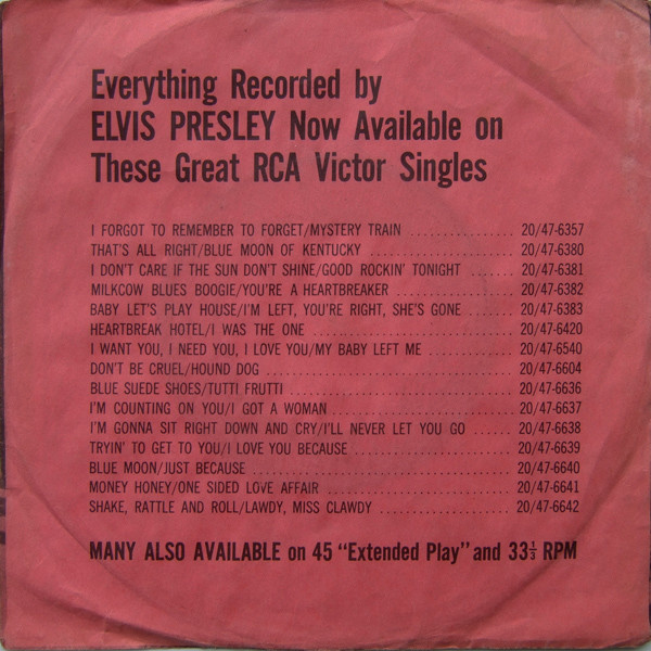 | Label: RCA Victor – 47-6643 Format: Vinyl, 7", 45 RPM, Mono, Rockaway Pressing Published By – Elvis Presley Music / Published By – Ross