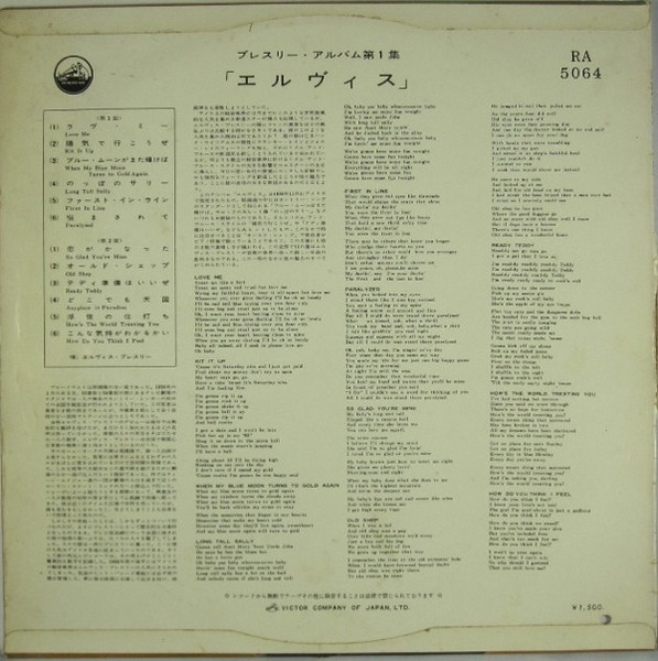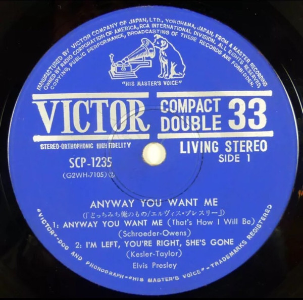 Label: Victor – SCP-1235 Series: Presley Golden Compact Series, Living Stereo Format: Vinyl, 7", 33 ? RPM, EP, Stereo Country: Japan Released: 10 Dec 1965 |