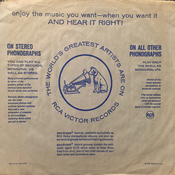 | Label: RCA Victor LPM-1382 (G2WP-1282) Format: Vinyl, LP, Album, Mono, Red Country: US Released: 2003 This is a replica of the original packaging. Released in 2003 The RCA Music Group. Manufactured by BMG Special Products, a unit of BMG Music. Made in U.S.A. DRL-13271 Matrix / Runout (Side A runout, etched): DRC 13271 LPM-1382 SIDE ONE |