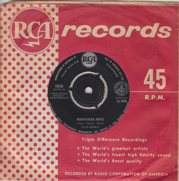 Heartbreak Hotel * Record Company Radio Corporation Of America Label variation without horizontal line. Track times displayed beneath