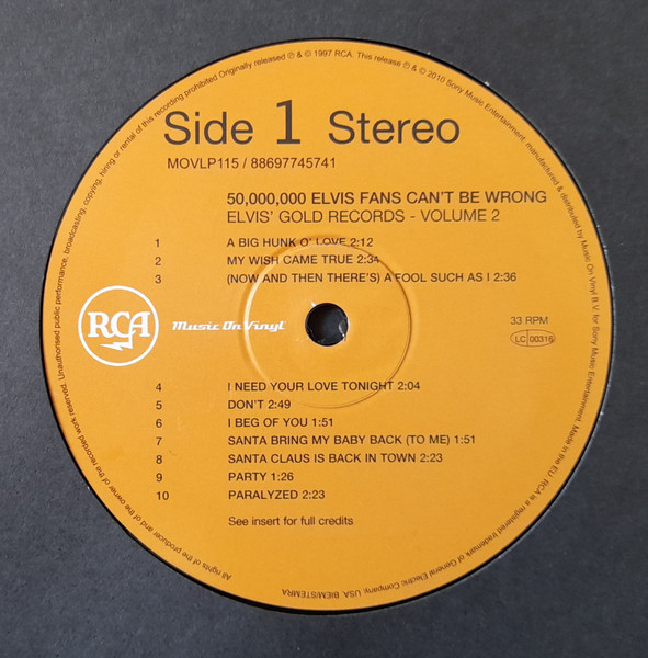 | 50,000,000 Elvis Fans Can't Be Wrong (Elvis' Gold Records, Vol. 2) Label: Music On Vinyl MOVLP115,