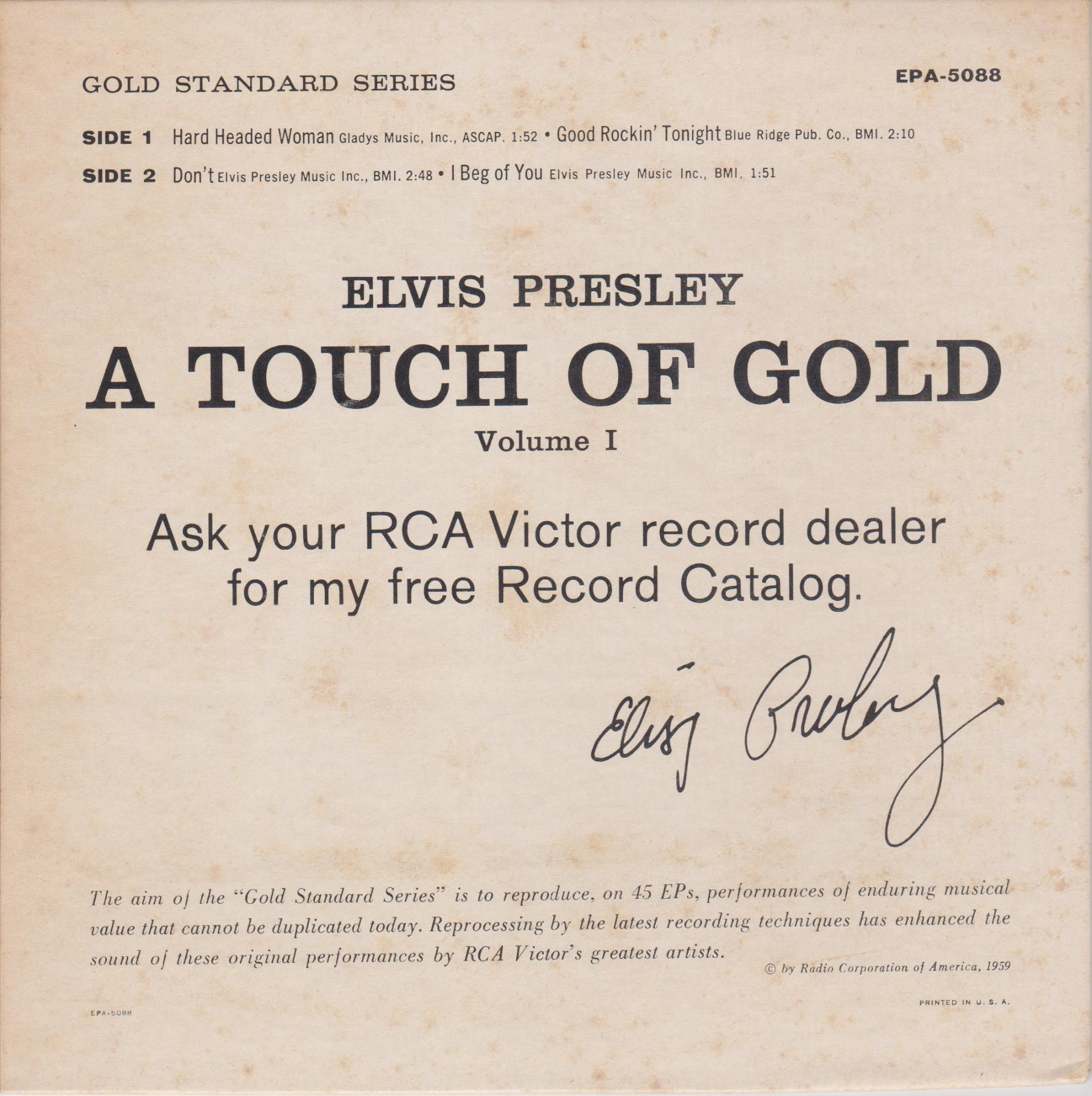| A Touch Of Gold Vol. 2 Label: RCA RCX 7203 Series: Gold Standard Series Format: Vinyl, 7", 45 RPM, EP, Reissue Country: UK Released: 1982 This release differs from the UK original as a result of Your Cheating Heart showing as track A2. On the original UK release RCX 1048 track A2 is listed as Treat Me Nice. |