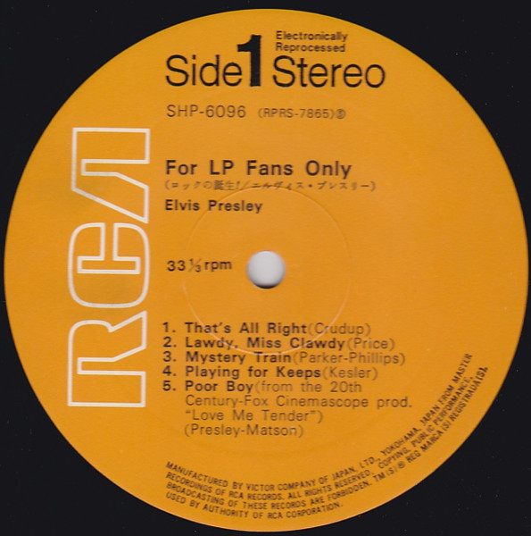 | For LP Fans Only Label: RCA SHP-6096 Manufactured By Victor Company Of Japan, Ltd. Japanese reissue LP from 1970. Japanese liner notes and English lyrics on the back sleeve. Released with obi. The album is in electronically reprocessed stereo. Matrix / Runout (Runout Side A - Stamped): RPRS 7865 121 UK |