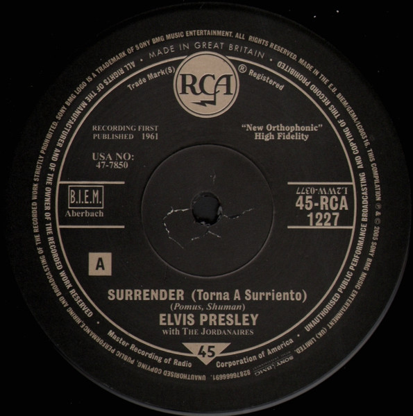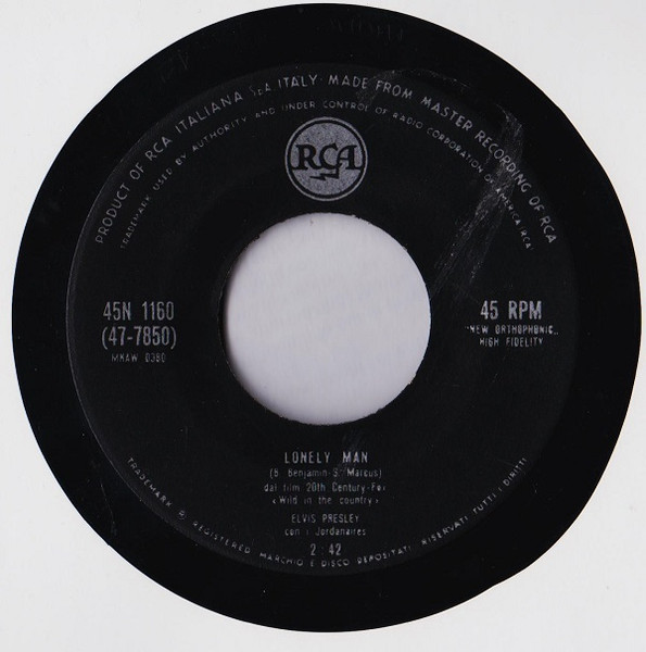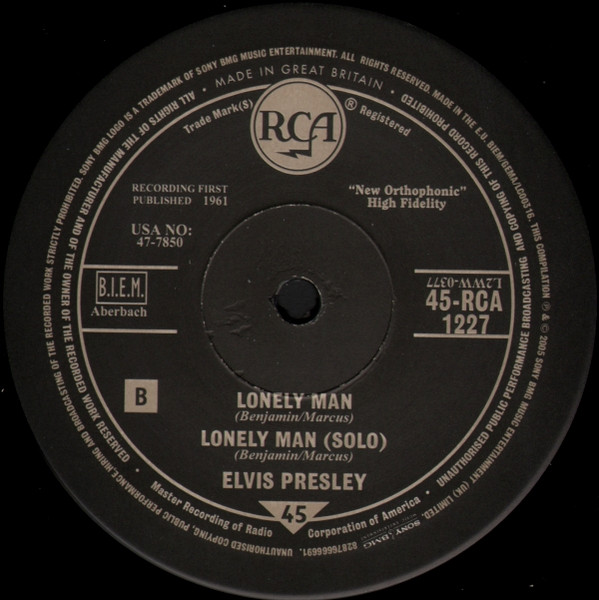 | Label: RCA Victor – 37-7850 Format: Vinyl, 7", 33 ? RPM, Single Country: US. Released: 1961 Pressed By – RCA Records Pressing Plant, Rockaway Label Variation with "New Orthophonic" High Fidelity on left side over Catalog number. Matrix / Runout: M2PI-1860-6S R In 1961, RCA Victor Records released Lonely Man b/w Surrender on compact