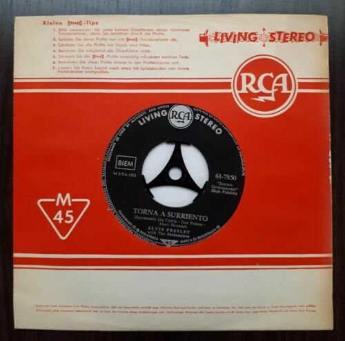 Elvis Presley Single RCA Living Stereo 61-7850 TORNA A SURRIENTO BIEM 1961 |
