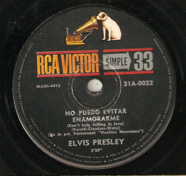 Can't Help Falling In Love Catalogue Number : RCA 47 - 7968 Published By – Gladys Music Inc. Details : |