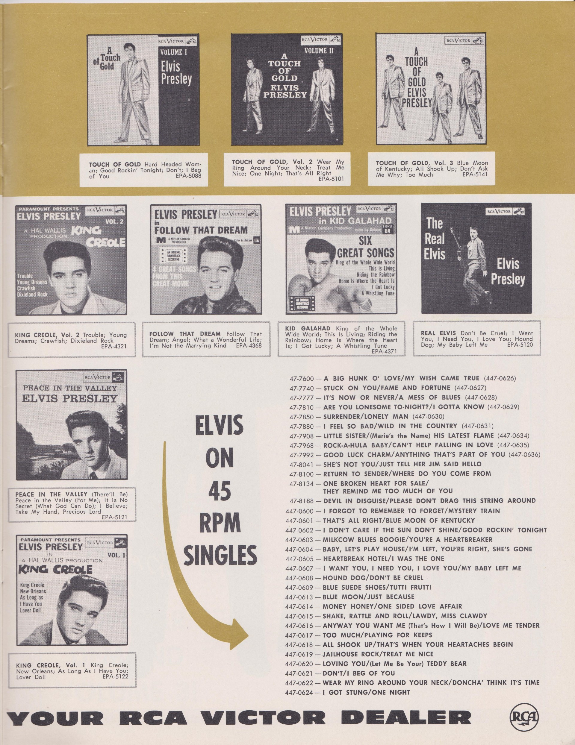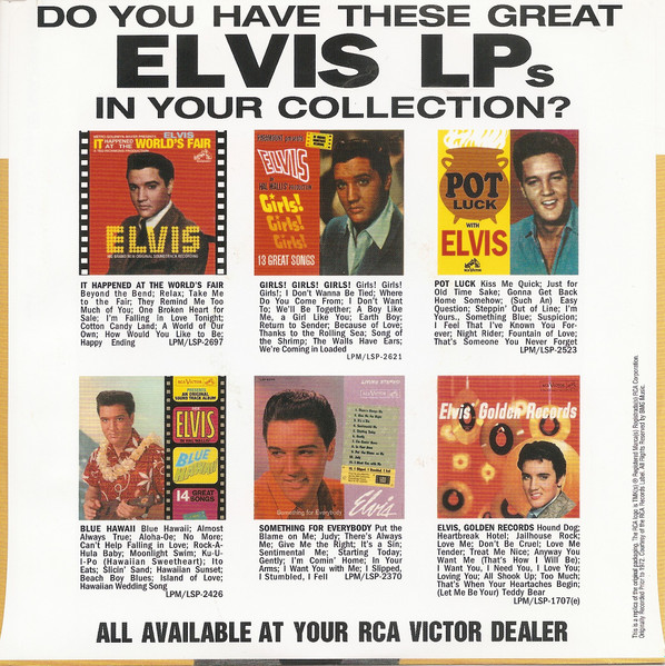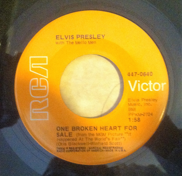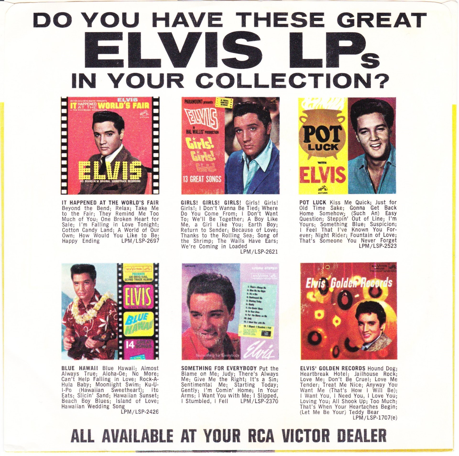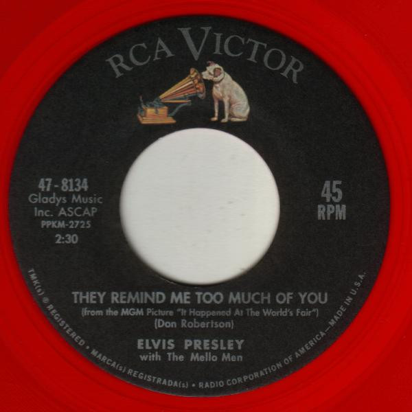 | Label: RCA Victor – 47-8134, Collectables – 47-8134 Format: Vinyl, 7", 45 RPM, Single, Reissue, Red Vinyl Country: US Released: 2001 2001 re-release in red vinyl with a picture sleeve From The MGM picture "It Happened At The World's Fair" Matrix / Runout (Side A): DRE13219A |