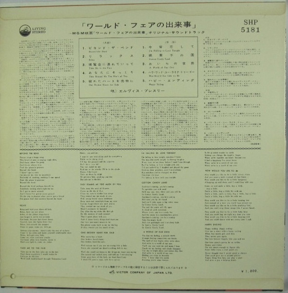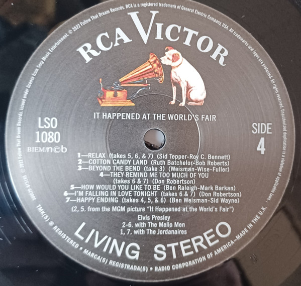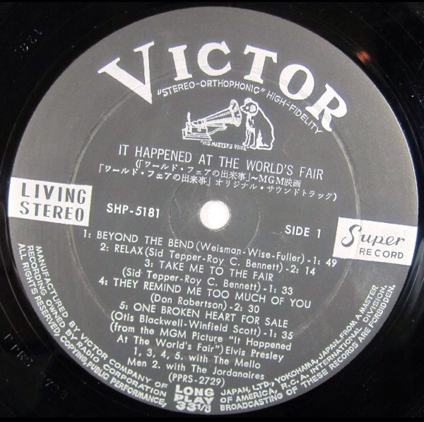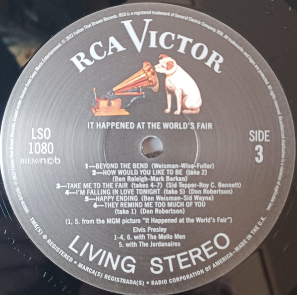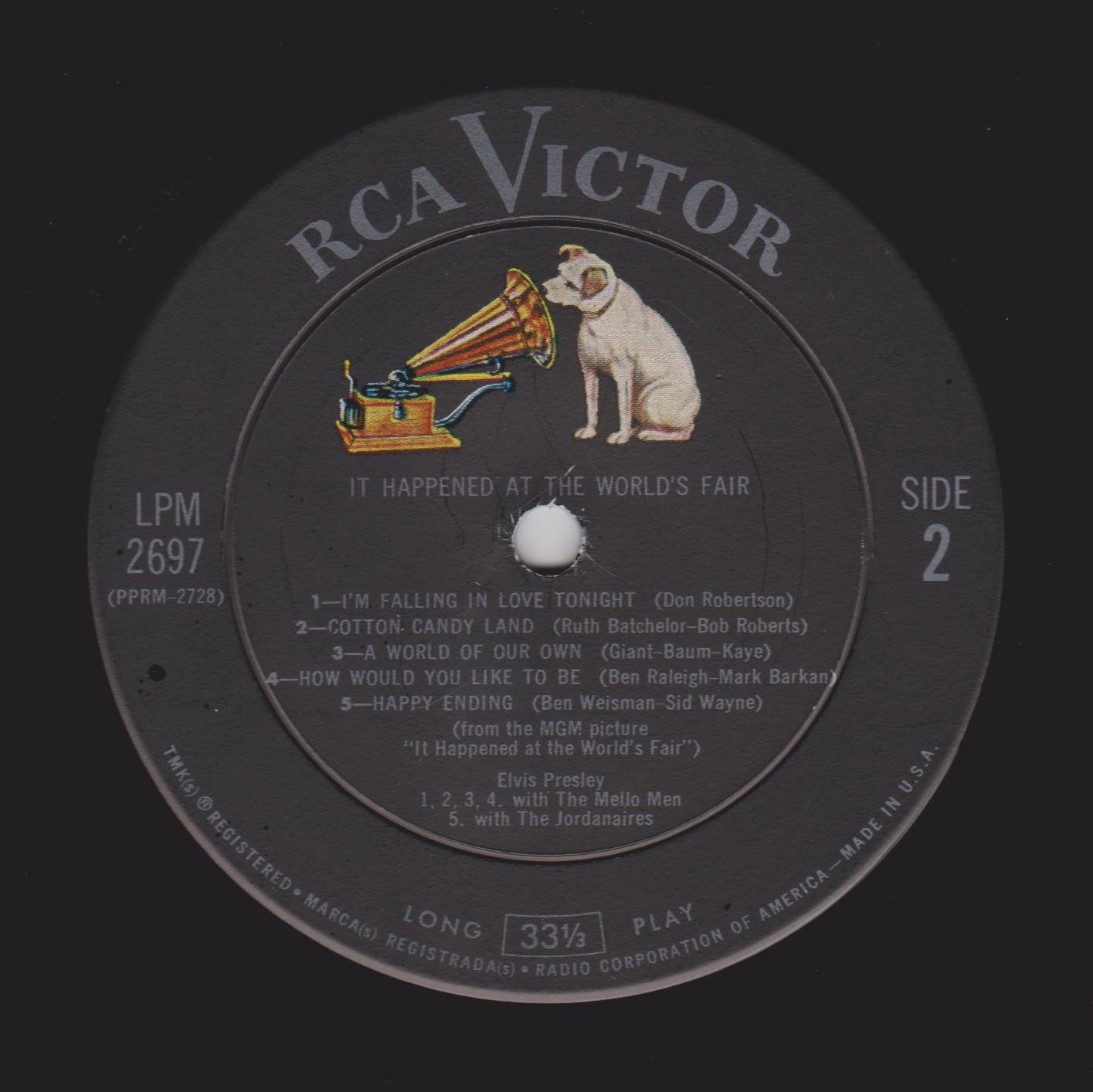 HAPPENED AT THE WORLD'S FAIR (LP) (US) RCA LSP / LPM 2697 Released: April 1963 Side 1 Beyond The Bend ** Relax * Take Me To The Fair ** They Remind Me Too Much Of You One Broken Heart For Sale Side 2 I'm Falling In Love Tonight ** Cotton Candy Land ** World Of Our Own ** How Would You Like To Be ** Happy Ending * * Recorded: Radio Recorders, Hollywood,