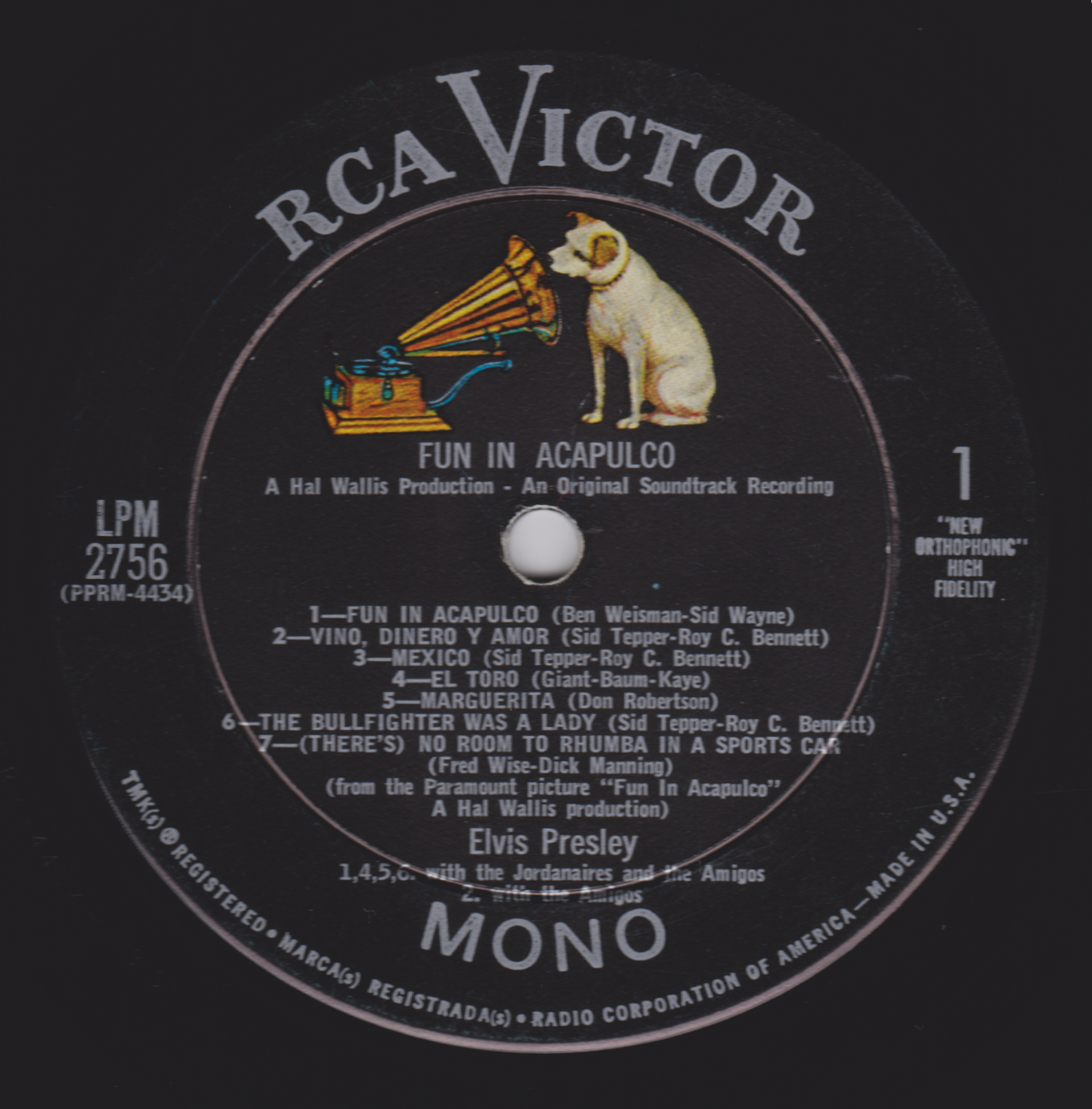 | Album Title : Fun In Acapulco Catalogue Number : LSP - 2756 Year Release : 15th November 1963 Side 1 : Fun