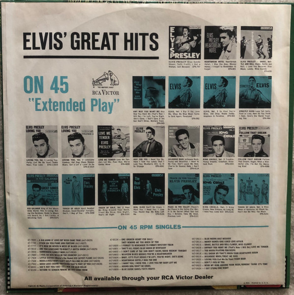 | Details : 1977 Release Front Cover : Photo of Elvis. Film title centered. Catalogue number top left. Rear Cover : 13 photos of Elvis. Catalogue number top right Mono LPM 2756 / Stereo LSP 2697. Label : Black dog near top. Flexible vinyl. Side A : RCA logo at top. Side B : RCA logo at top. Pressing Plant : Indianapolis Matrix Number Side 1 : PPRS - 4436 - 7S A2 (Machine Stamped) E (Hand Etched) Matrix Number Side 2 : PPRS - 4437 - 7S A1 (Machine Stamped) B B (Hand Etched) *NOTE* Rear cover Printed in U.S.A. bottom side right. Side A & B now replaces Side 1 & 2. |